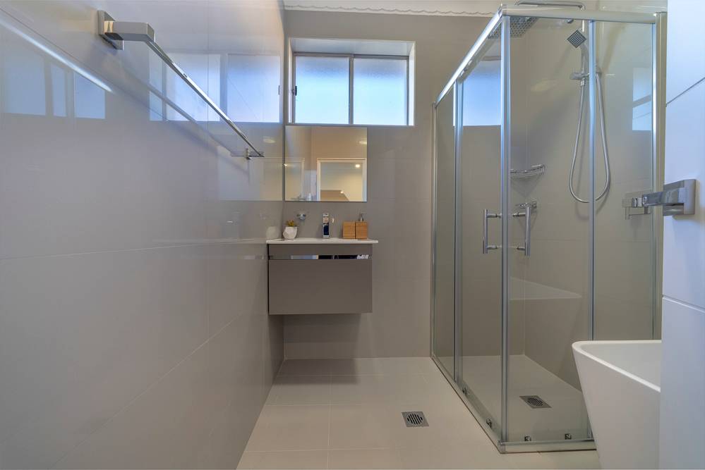 • Bathroom with bath and shower