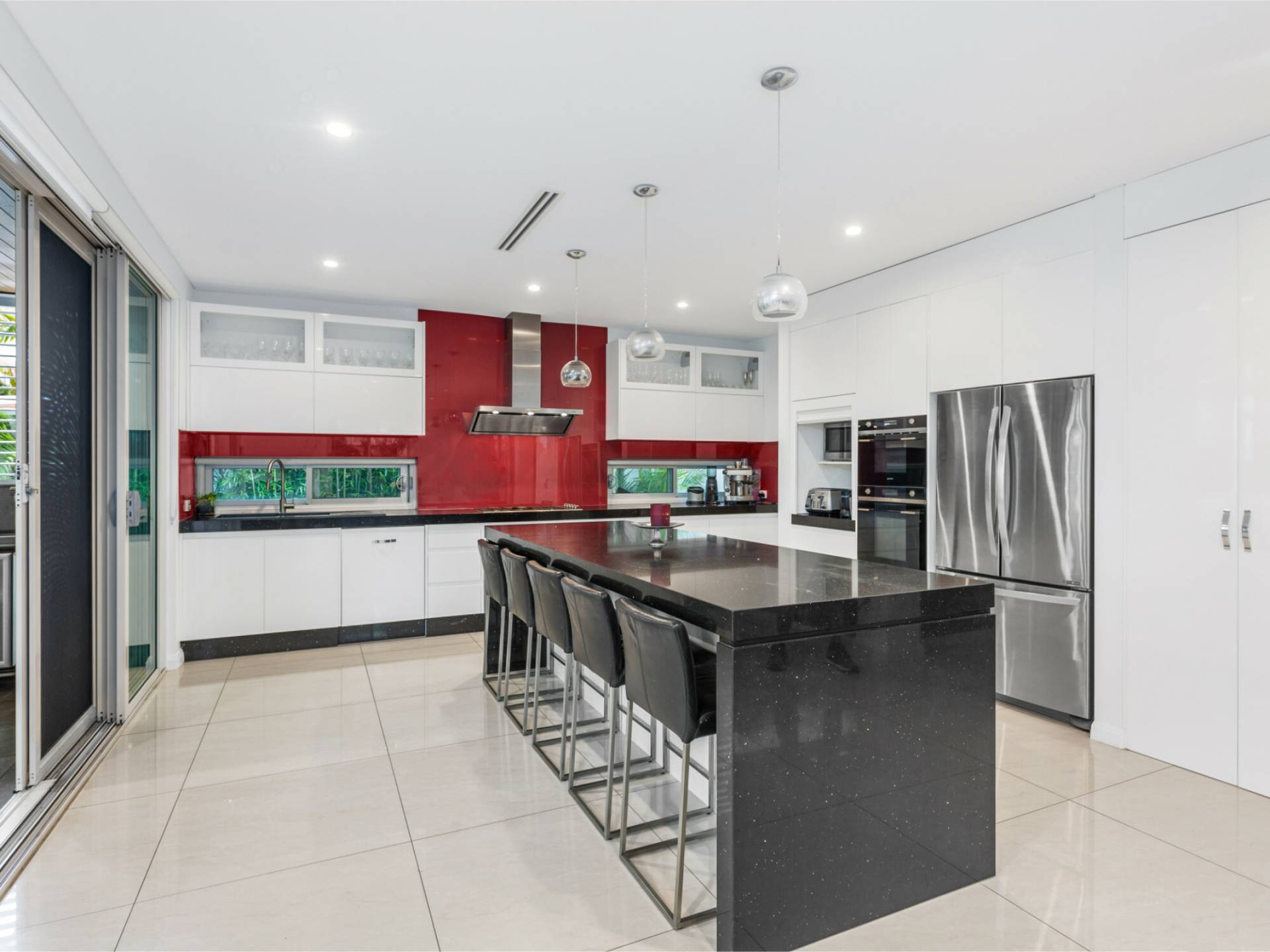 • Large kitchen with island bench, stainless steel appliances & walk in pantry.