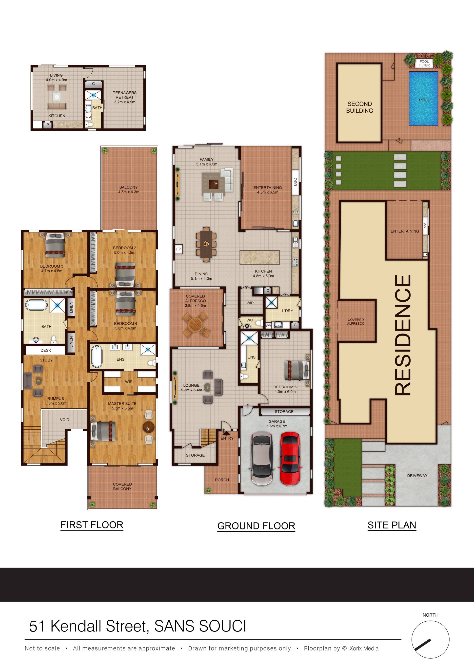 • Featuring 5 bedrooms all with built ins, 5 bathrooms & Main with ensuite walk in robe & private balcony.
